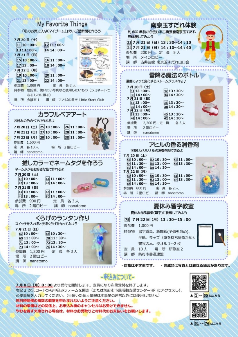 申込み:来所、電話、FAX、メールにて防府市市民活動支援センターへ